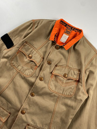 Jean Paul Gaultier 1990 Worker Jacket fits S-M Check measurements 9/10 Condition Width: 19 Length: 27.5 Shoulder: 15 Sleeve: 24.5 Accepting offers No return No exchange Ask before buy
