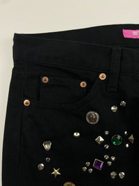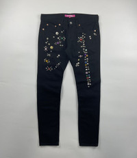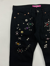 Junya Watanabe AD2002 Jewel Studded Denim Sz Medium 9/10 Condition Cut washtag Missing chain Missing pin Waist: 16 Inseam: 28.5 Leg Opening: 5.5 Front Rise: 9 Thigh: 10 Knee: 7 Measured it by inches Accepting offers No return No exchange Ask before buy