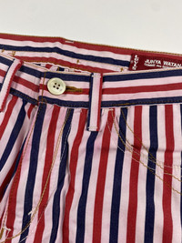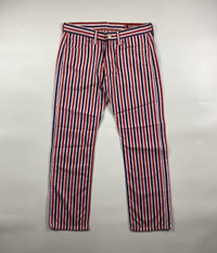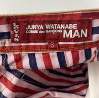 Junya Watanabe x Levis AD2002 Stripe Pants Sz Small 8.5/10 Condition due to color bleeding, check pics Waist: 16 Inseam: 28 Leg Opening: 7.5 Front Rise: 9 Thigh: 11 Knee: 8 Total Length: 37.5 Accepting offers No return No exchange