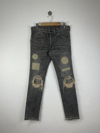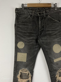 Number (N)ine F/W'04 Love & Peace Patchwork Distressed Denim Sz 2 fits 30 Check measurements 9/10 Condition Waist: 15 Inseam: 30 Leg Opening: 6 Front Rise: 9 Thigh: 9.5 Knee: 7 Measured it by inches Accepting offers No return No exchange Ask before buy