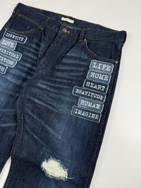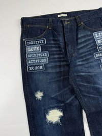 Number (N)ine S/S’02 The Modern Age Patch Denim Jeans Sz 4 fits 36 Check measurements 9.5/10 Condition Waist: 18 Inseam: 30.5 Leg Opening: 9 Front Rise: 11 Thigh: 13 Knee: 10 Measured it by inches Accepting offers No return No exchange Ask before buy