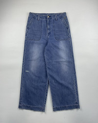 45rpm Wide Denim Sz 1 fits 30 Check measurements 9/10 Condition Waist: 15 Inseam: 26.5 Leg Opening: 10.5 Front Rise: 13.5 Thigh: 12 Knee: 11.5 Measured it by inches Accepting offers No return No exchange Ask before buy