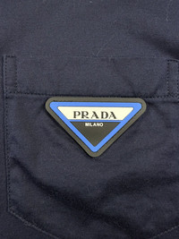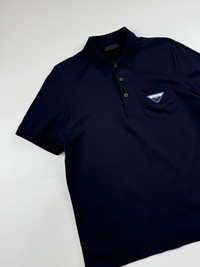 Prada Triangle Logo Polo Shirt Sz Small can fit Medium Check measurements 9/10 Condition 1 pinhole issue Width: 19 Length: 25 Shoulder: 16.5 Sleeve: 8 Measured it by inches Accepting offers No return No exchange Ask before buy