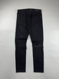 Saint Laurent Knee Ripped Denim Sz 32 9/10 Condition Waist: 16.5 Inseam: 29 Leg Opening: 6.5 Front Rise: 10 Thigh: 11 Knee: 8.5 Measured it by inches Accepting offers No return No exchange Ask before buy
