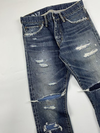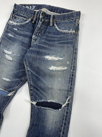 Visvim S/S'20 Social Sculpture 14 Damaged-17 FIL Exclusive Denim fits 30 Check measurements 9.5/10 Condition Waist: 15 Inseam: 23 Leg Opening: 7 Front Rise: 9.5 Thigh: 11 Knee: 7.5 Measured it by inches Accepting offers No return No exchange Ask before buy