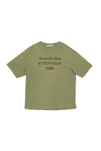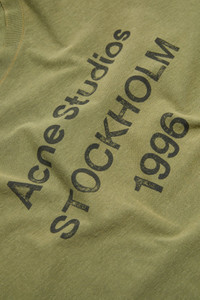 CL0196/AB7 The Logo 1996 T-Shirt by Acne Studios in Olive Green is a timeless wardrobe essential with a modern edge. Crafted from premium cotton, it features a vintage finish that gives it a distinctive worn-in look. Designed for a relaxed unisex fit, this crew neck T-shirt has distressed details at the neck, cuffs and hem, adding a touch of character. The Acne 1996 logo completes the design, paying homage to the brand's heritage. Stylish and versatile, it's a great addition to any casual outfit.