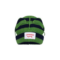 052132703 Supersized Chunky Ears Beanie (Green/Navy Stripe) OS 80% Wool 20% Nylon Green/Navy Stripe