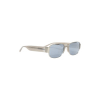 DVN196C2SUN Rectangular sunglasses in gray color from the collaboration of Dries Van Noten and Linda Farrow. The sunglasses have a metal frame with an acetate nose bridge and arms.