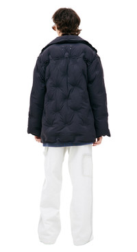 SI1AM0003/S54870/900 Styled with: Maison Margiela Sneakers, Maison Margiela Jeans, Maison Margiela Sweatshirt Material: 100% nylon Designed in: France Model is 192 cm and is wearing size 38 Color: Navy blue