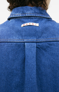 BLUE COATED DENIM SHIRT WITH MOHAIR PATCHES