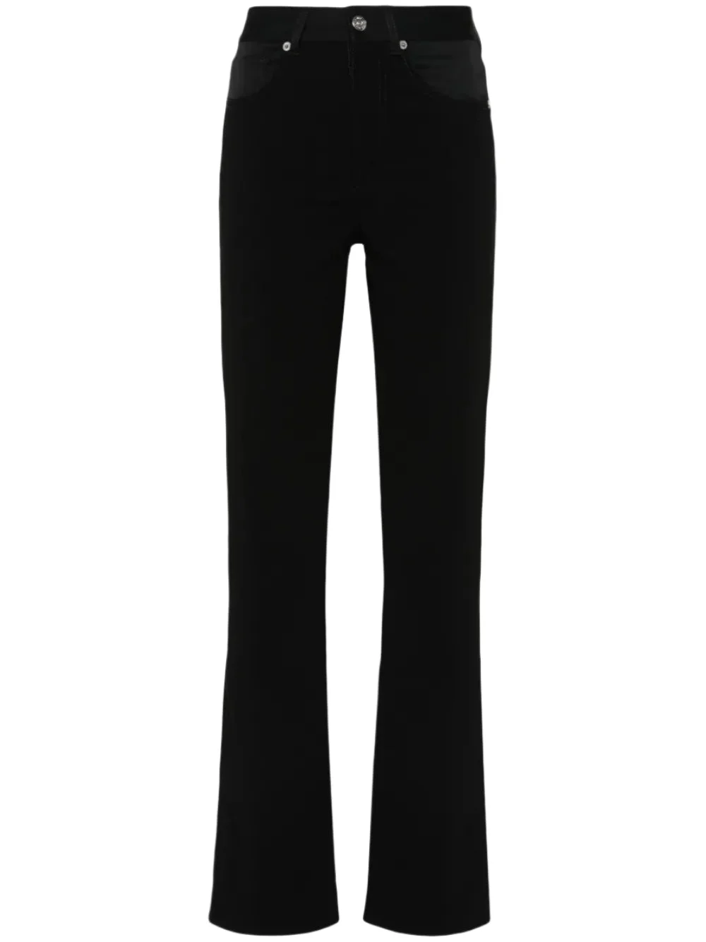 S52LA0223/S78536/900 Another wardrobe essential from MM6. These black jeans are cut by Italian denim to a comfort fit. 5-pocket set up and well known discreet yet distinct signature, a horizontal line of white stitches on the back.