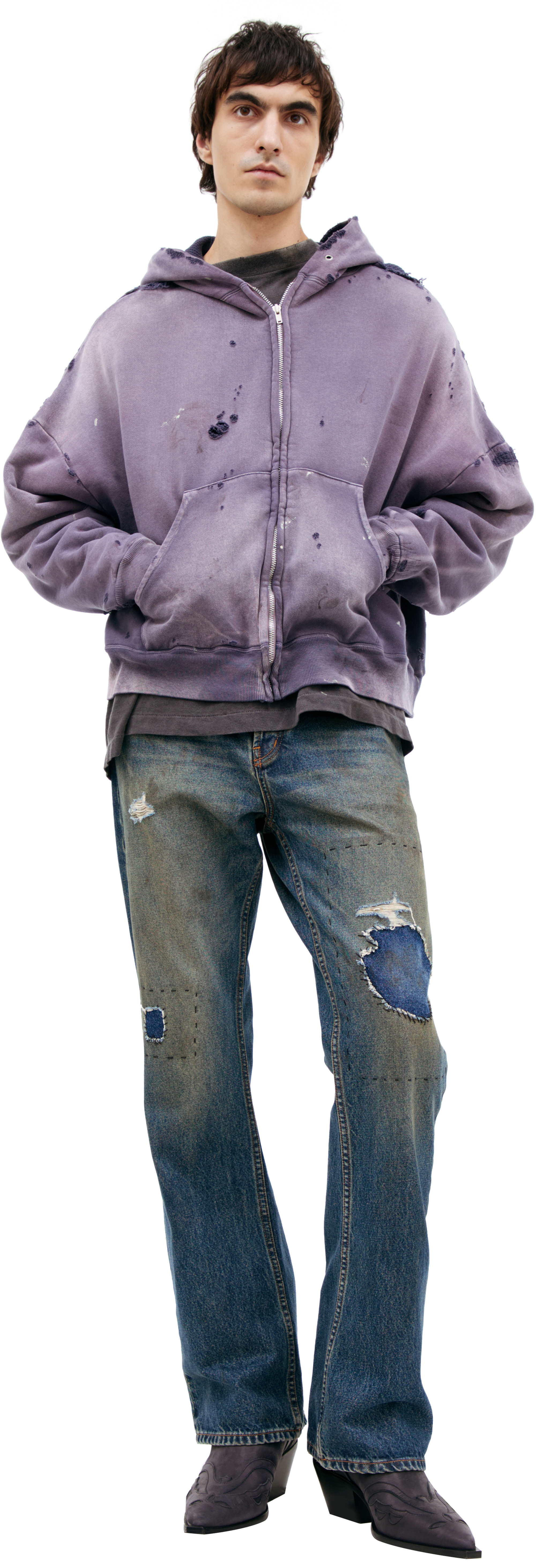 RIPPED HOODIE WITH ZIPPER