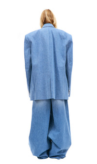 UE64JA380N/2801 Styled with: VETEMENTS Jeans, VETEMENTS Logo embroidered tank top, VETEMENTS Boots Material: 100% cotton Designed in: France Model is 170 cm and is wearing size M Color: Blue