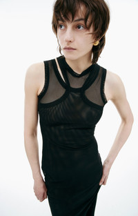 10% off at check out | Discount Until March 16th WA66DR220B Styled with: VETEMENTS Boots Material: 66% polyamide 34% elastane Designed in: France Model is 180 cm and is wearing size M Color: Black