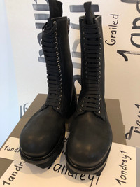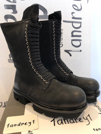 NEW!!! Rick Owens mega tooth bozo army boots 44 size!!!! Super cool matte leather!!!! Sample first pair of this awesome model megatooth boots. Rules. 1. Offers are welcome only when you are PayPal ready and sure about the deal: 2. Ask any questions Before sending offers. 3. No returns exchanges or refunds. No exceptions. Thank you!