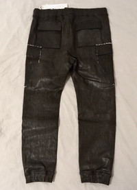 THE RAREST BLACK WAX EDITION OF THE LEGENDARY RUNWAY JOGGERS ONLY A FEW PRODUCED AND MOSTLY SOLD AMONG CELEBRITIES LIKE ASAP ROCKY TRAVIS GUNNA ETC THE ONLY ONE NEW ON GRAILED IN SIZE 52 THE BEST SLQ STRETCHY FABRIC WHICH RICK USES ONLY IN THE ICONIC PIECES LIKE THOMAS JOGGERS AND AIRCUTS BRAND NEW MAINLINE SICK PANTS Condition: BRAND NEW Size: it52 Composition: Calfskin panels, Cotton 91% Spandex/Elastane 3% polybutylene 6% Full measurements in the pics LOTS OF FITPICS ADDED WHAT YOU SEE ON PICS #2,3,4 IS WHAT YOU GET _______________________________ SHIPPING: Estimated delivery time 14-21 days AFTER PAYMENT. Tracking will be provided within 3-5 days after payment is completed. Please dont worry if there will be no tracking updates for a few days - its fine and will not affect the delivery time (14-21 days). Delay might happen as we are living in Covid era, but very rarely _______________________________ RULES. Ive described most deal related issues in the below and I will not reply to questions already covered. I know you dont owe me anything but if you dont respect me and my request I wont respect you. No exceptions. Thank you. 1. Offers are welcome only when you are PayPal ready and sure about the deal: 2. Ask any questions BEFORE sending offers. If you request additional info after the offer is accepted youll be blocked immediately; 3. Please complete the deal over 24 hours after the offer is accepted; 4. If something changes and the deal cannot be done please spend 2 minutes to briefly explain the situation. Flakers are blocked; 5. Please do NOT send offers to test waters. I dont mind discussing the price in the messages but please dont write Ill buy it immediately if if you dont actually plan to buy it; 6. There is a 60% threshold on grailed but it doesnt mean I always consider offers in that range. Everyone wants the best price but please avoid ridiculously low offers 7. If make an offer button is turned off I do NOT consider offers. 8. I dont mark my parcels as a gift. Keep in mind that customs fees and brokerage fees are responsibility of the customer. 9. No returns exchanges or refunds. Thank you!