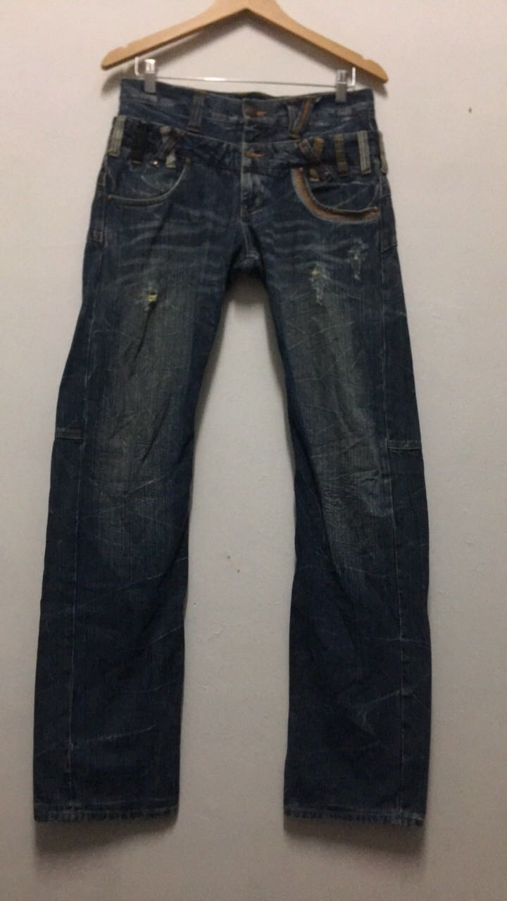 Dominate Handcrafted Jeans Double Waist Distressed Acid Wash