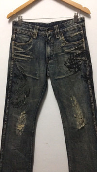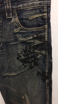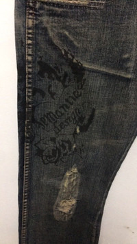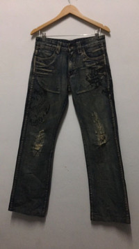 Japanese Brand- Semantic Design Distressed Denim ISWN Waist size:31 Outseam: 39” Inseam: 31” Open leg: 8.5” Front rise: 9” Thigh: 11” Knee: 8.5” Sale are final Sku:o