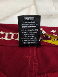 This beautiful casual embroidered style surf pant from more core division is a side project from an older surf brand names Gotcha which was started by a pro surfer named Micheal tomson who lived in South Africa but then he moved/expanded his company to the US. They made m.c.d. to be able to pick up more edgy surfers for their team/give them the ability to change their image under a different name. Size : Small fixed 31 inches waist Condition : Excellent used condition (used item) Measurements (taken from front with garment laid flat): Waist: 15.5" (31") inches/ 39cm Front Rise: 9.1" inches/ 23cm Outseam: 41" inches/ 104cm Inseam: 31.5" inches/ 80cm Thigh: 10.6" (21.2") inches/ 27cm Knee: 8.3" inches/ 21cm Leg Opening: 8.3" (16.6") inches/ 21cm *Accept reasonable Offer *Shipped via DHL Express worldwide *Phone number are required. *Special price for bulks, bundles/ multiple item. Just ask. TQ ✍️ ● Please focus to details and measurement given very carefully. Strictly NO REFUND