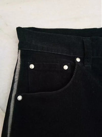 Beautiful side line velvet denim pants by Japanese designer Hiromichi Nakano SS2006/07. Feauturing 5P, 5 Buttonfly and velvet pin stripe cotton's this lovely piece very high end design with comfortable for daily wear. Size : L fixed 31 inches waist Condition : Excellent ( Vintage/used item) Measurements (taken from front with garment laid flat): Waist: 15.5" (31") inches/ 39.5cm Front Rise: 11" inches/ 28cm Outseam: 41.3" inches/ 105cm Inseam: 32" inches/ 81cm Thigh: 11" (22") inches/ 28cm Knee: 8.5" inches/ 21.5cm Leg Opening: 7.5" (15") inches/ 19cm