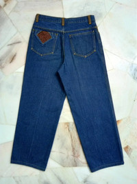 Incredible jeans from iconic French luxury fashion house Yves Saint Lauren (YSL) from the 80's - 90's period. This unique piece featuring full leather, watch pockets both left and right, belt loop and big logos on the back pocket. Copper rivet similar like vintage Wrangler from the 60's era. One kind of Holy Grail by Saint Laurent today respectively. Please see the picture for more details! π₯ππ Waist: 15.5" (31") inches/ 39.5cm Front Rise: 12.5" inches/ 31.5cm Outseam: 38.2" inches/ 97cm Inseam: 27" inches/ 68.5cm Thigh: 12.5" (25") inches/ 32cm Knee: 11" inches/ 28cm Leg Opening: 8.7" (17.4") inches/ 22cm Size : 48 fixed to 31 inches waist Condition : Excellent vintage condition