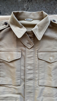 . auralee M65 WASHED DOUBLE CLOTH FIELD JACKET A6SB01AR SAND fixed price. high end item. made in japan. superb. tag 3 fits M. sand. most accurate color : wash tag images. thick and luxurious high density fabric. lined sleeves. as new. HD + additional images + measures : https://ibb.co/album/qyMbWj auralee .