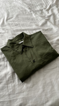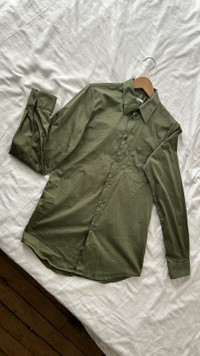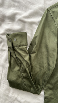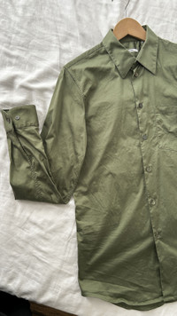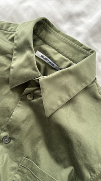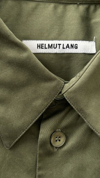 . helmut lang BUTTON UP SHIRT 03-5770-1055 fixed price. brand new and never worn. washed once for the sale 39 / 15.5 collector. high end item. iridescent army green luxurious fabric. made in italy. HD images : https://ibb.co/album/Rp0zL5 helmut lang .