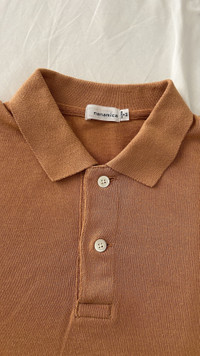 . nanamica POLO SWEATER APRICOT BEIGE MEDIUM SUJS950 fixed price. highly technical fabric. very light and breathable mix of cotton polyester and linen. perfect for high heat. worn less than 5 times. size M fits M. high end item. made in japan. nanamica. .