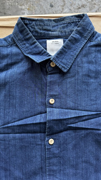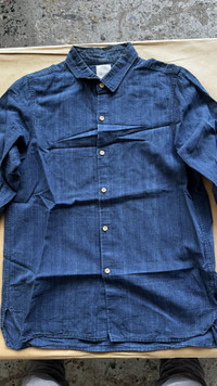 . visvim LONG RIDER SHIRT L/S (COTTON/LINEN) 0116105011017 fixed price. high end item. famous long rider in very rare Kasezome Indigo version. made in japan. corozo buttons. light fading here and there. coton linen blend. gorgeous dye. tag 1 fits S / small M. very rare. iykyk. HD images: https://ibb.co/album/HL4MXq "Kasezome Natural indigo dye, featured many times in our previous collections, possesses an uneven, textured appearance. This is brought about by many difficult-to-control elements, like variations in temperature, chemical properties of the de itself, and irregularities rooted in the idiosyncrasies of human touch. Through use of a technique called kasezome (skein-dyeing), artisans are using synthetically produced indigo dye and attempting to replicate, or perhaps even improve upon, the unique unevenness found in natural indigo dye. We are employing a kasezome hand-dyeing technique, which is extremely time and effort intensive, in order to create richly colored fabrics that can proudly stand side-by-side with fabrics dyed in natural indigo. Of course, simply hand-dyeing something does not automatically make it good. It is crucial to have a deep knowledge of indigo, and years of accumulated experience. Synthetic indigo was originally meant to be quick-dyeing and even - typically considered to be desirable traits - but we thought it'd be interesting to use the dye to an opposite effect. If the end goal is not clear, it is impossible to think creatively in this manner. This is an idea that didn't exist before in the world of indigo dyeing." made in japan. cubism inc. .