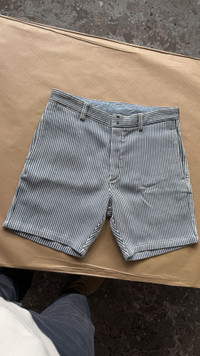 . visvim PASTORAL SHORTS (DMGD DOBBY) BLUE AND WHITE 0115105008019 i will accept a reasonable price offer. high end and very rare item. made in japan. as new. tag 2 fits M/L. HD images + additional images + fit + measures : https://ibb.co/album/WWy1Xz — The VISVIM PASTORAL SHORTS (DMGD DOBBY) are a refined example of Visvim’s commitment to traditional textile craftsmanship fused with contemporary functionality. The fabric is a custom-woven Japanese cotton dobby, characterized by a subtly raised geometric texture, offering both breathability and tactile richness. The “DMGD” (Damaged) finish refers to Visvim’s in-house wash and distressing process, which gives the shorts a vintage patina and soft, broken-in feel while preserving the integrity of the fabric. The cotton yarns used are typically ring-spun and yarn-dyed, then woven on old-style shuttle looms in Okayama, Japan, a region renowned for heritage denim and artisanal textiles. The shorts are then subjected to Visvim’s proprietary garment-dye and abrasion techniques to replicate decades of natural wear. Construction-wise, the PASTORAL SHORTS feature French seam finishes, custom corozo nut buttons (sourced from Ecuadorian tagua palm nuts, cut and polished in Germany), and a cotton herringbone waist lining for added structure and comfort. Reinforced pocket bags and a mid-thigh cut balance utility with everyday wearability. The result is a pair of shorts that blends historic Japanese textile craftsmanship, natural plant-based materials, and Visvim’s signature slow-process dyeing into a refined summer staple. They embody the brand’s ethos of contemporary heirlooms—modern garments built with antique methods, made to wear beautifully over time. cubism inc. .