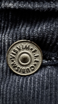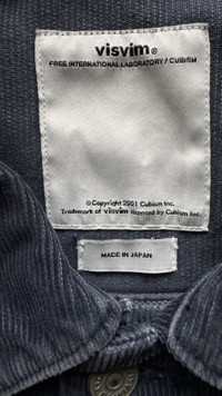 . visvim 101 JKT (CORDUROY) VS0002014 fixed price. high end item. famous 101 JKT in blue corduroy. HD and additional images : https://ibb.co/album/yhKN0y tag 2 fits M. snake skin patch. custom buttons and rivets. 2 zipped outside side pockets. 2 frontal pockets. made in japan. soft, light and luxurious fabric. light mark on the inside part next to the second button, see picture. invisible when worn and light fading on the external elbows. made in japan. cubism inc. .