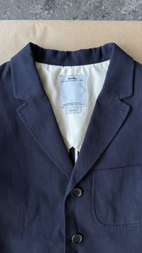. visvim MESA BLAZER (COTTON/PAPER) VS0001739 fixed price. high end item. iconic mesa blazer in pristine condition. tag XL fits L. single vent. worn once, light mark inside underarm, rest is new. cotton and japanese paper blend luxurious fabric. HD images + measures : https://ibb.co/album/V29JGj made in japan. cubism inc. .