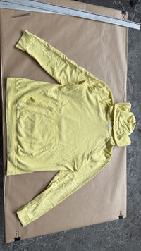. visvim EARLY YEARS HOODIE fixed price. high end item. made in japan. tag M fits M. tiny dot on the front, almost invisible, see last picture. early visvim years. bright and beautiful yellow. very soft fabric. visvim white leather and metal rivet on the hood. HD images + measures : https://ibb.co/album/vXb37D cubism inc. .