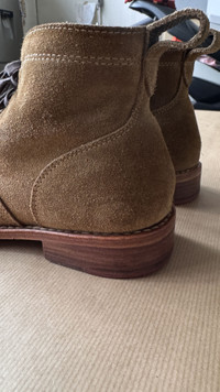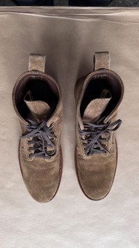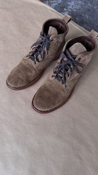 . visvim HILTS BOOTS MID-FOLK LT.BROWN 0115102002002 i will accept a reasonable price offer. M8.5 HANDMADE GOODYEAR. HD images + additional images + measure : https://ibb.co/album/1brcpQ — A reinterpretation of classic military chukka boots, the HILTS BOOTS MID-FOLK from Visvim blends vintage utility aesthetics with elevated craftsmanship. The upper is constructed from premium UK vegetable-tanned cow suede in a warm light brown tone that develops character over time. Its mid-cut silhouette offers a clean, versatile profile—sitting just above the ankle for everyday ease. Built with Visvim’s signature FOLK construction, the boots feature a hand-sewn Goodyear welt and are set on a custom natural crepe rubber sole—offering a soft, flexible feel and quiet step, ideal for casual wear. A natural cork footbed provides adaptive comfort, while the full vegetable-tanned leather lining ensures breathability and durability. Finished with tonal leather laces and a hand-painted welt edge, these boots embody Visvim’s signature approach: timeless design, natural materials, and Japanese artisanal integrity. cubism inc. .