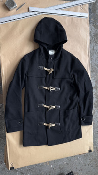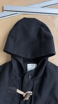 . visvim COMMODORE COAT WOOL GORE-WINDSTOPPER BLACK VS0001571 i will accept a reasonable price offer. high end and rare item. tag S fits S. little yellowing inside the hood, invisible when worn, see pictures. back vent sticking has never been opened. specific construction of the hood for better visibility. wool is luxurious. HD images + addition al images + measures : https://ibb.co/album/Y07J81 — The outer shell is made from 100% melton wool, woven in Japan using traditional techniques that create a dense, wind-resistant fabric with natural thermal insulation. The surface exhibits a clean, dry hand-feel while retaining flexibility and shape memory. Bonded to the interior face of the wool is a GORE-Windstopper® membrane, providing full windproofing while remaining breathable. This technical film acts as a barrier against cold air while allowing moisture vapor to escape, making it ideal for cold-climate, active daily wear. Between the shell and lining is a gusseted 100% nylon film layer, which adds dimensional structure and enhances insulation performance without added bulk. The inner lining is a 50% cotton / 50% cupro blend—soft, moisture-wicking, and static-resistant—woven in Japan for a comfortable and breathable interior against base layers. The front closure features Swiss-made riri zippers, precision-engineered for ultra-smooth glide and long-term durability. These are considered among the highest-grade zippers globally, hand-assembled and polished in Ticino, Switzerland. Closure toggles and detailing are made from genuine Italian cowhide leather, hand-cut and edge-finished, paired with natural horn buttons sourced from Germany, known for their strength and organic patterning, ensuring every button is unique. cubism inc. .