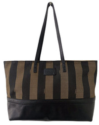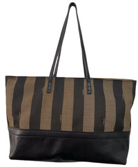 Authentic Fendi Pequin Medium Tobacco Tote Shoulder Bag