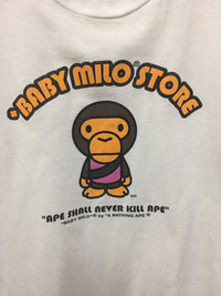 Brand - Baby Milo by Bathing Ape Armpit to armpit - 18 inch Length top to bottom - 25 inch Condition - very good No Stain No pinhole Print in good condition -Please check actual size carefully, no RETURN or COMPLAIN for wrong size -Discount *please give us your offer,we can only accept the discount by negotiation -Shipping DHL EXPRESS *Basically we ship your package after you purchase within 3 working days. -Delivery period 4 - 7 day (working day) NOTICE Please leave your phone number while make a purchase. I need it for the shipping form.