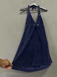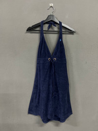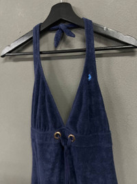 RALPH LAURENT NAVY BLUE TERRY CLOTH HALTER DRESS