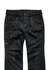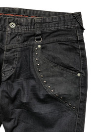 If Six Was Nine - Nicole Club for Men studded leather pocket flare denim pants