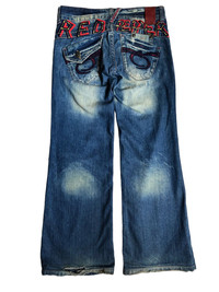 If Six Was Nine - Red Pepper wide leg flared blue wash denim pants