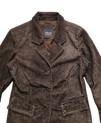 Two pockets. Nice design very edgy- avant garde. Look vintage with small defects on button parts. All button is functioning. Material : 52% polyester 45% cotton 3 % Polyurethane Lining 100% cotton Do take your time to carefully read the measurement before purchasing the item. We don’t give out refund/return if the item does not fit you as all measurement are stated clearly in the description. DM for more enquiries. Thank you.