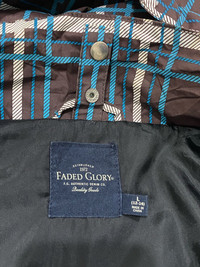 Faded Glory Double zipper Talon Hoodie Jacket Size On Tag : L 100% Polyster Condition : Used Item, One pocket zip broken Please kindly check all pictures by virtue of purchase to the condition presented in pictures. Manual measurement Armpit To Armpit : 23” Inches From Top To Bottom : 28” Inches Shoulder to Shoulder : 18" Inches Hem : 22" Inches Sleeve : 25 "Inches REFUNDS Refund are given only if items are not as described, SO please read details and check all picture closely before buying. THANKS YOU !!! INTERNATIONAL SHIPPING Shipping with DHL Express. After Purchase Please Leave Your Phone Number for Shipping proses.