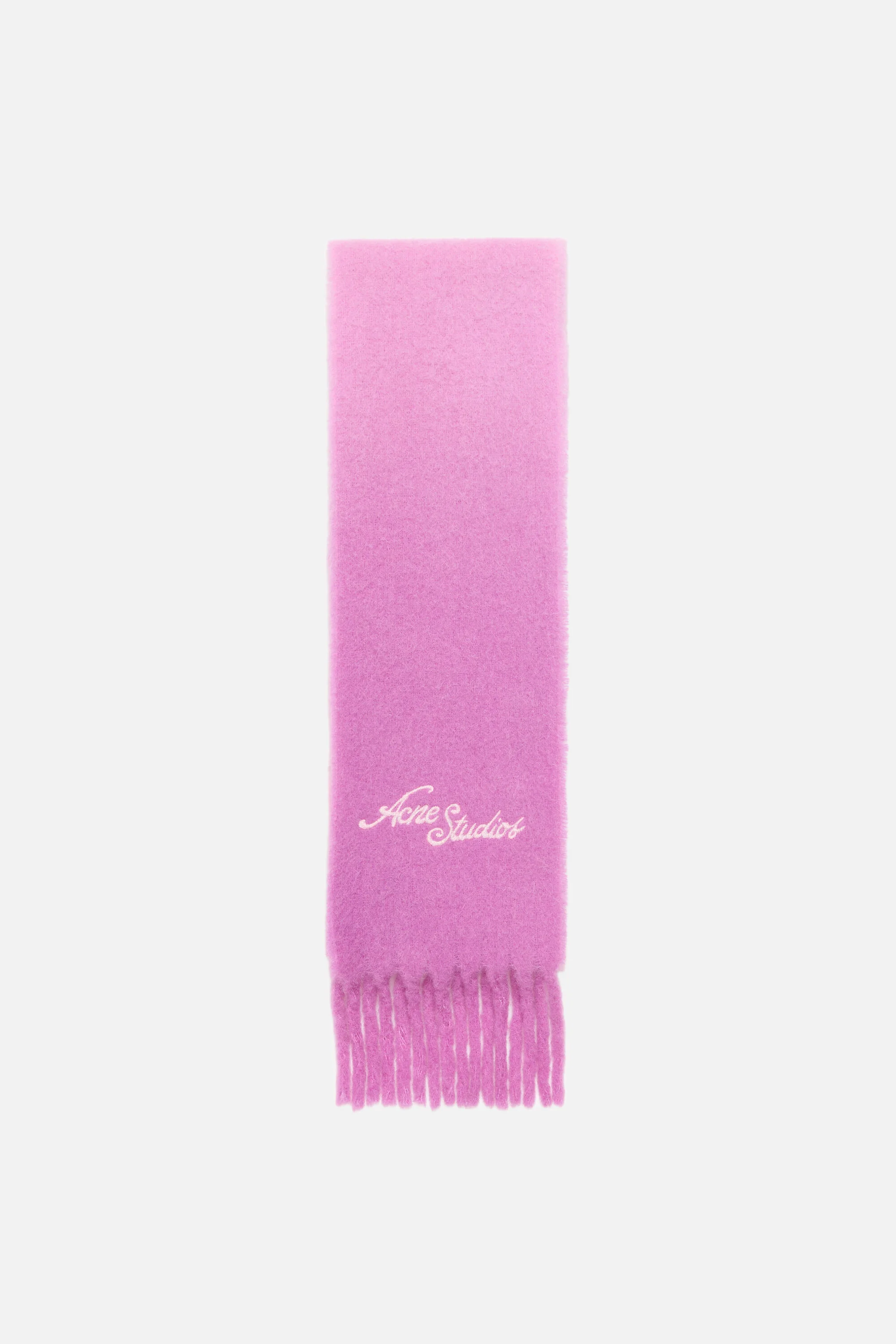 Fringed scarf with a dip-dye effect, designed in celebration of the Year of the Horse and detailed with embroidered seasonal artwork. Crafted from carefully selected fibers known for their soft, fuzzy texture. - Dip-dye appearance - Seasonal embroidered artwork - Measurements including fringe: 250 cm length; 28 cm width - Fringe measurements: 12 cm approx. - Made in Italy - Style ID: AC-UX-SCAR000007 - Due to the characteristics of the material, it is natural for small fibres to shed over time. Handle with care to preserve the original appearance as long as possible. - Shell: 22% Wool, 33% Alpaca, 25% Mohair, 20% Nylon