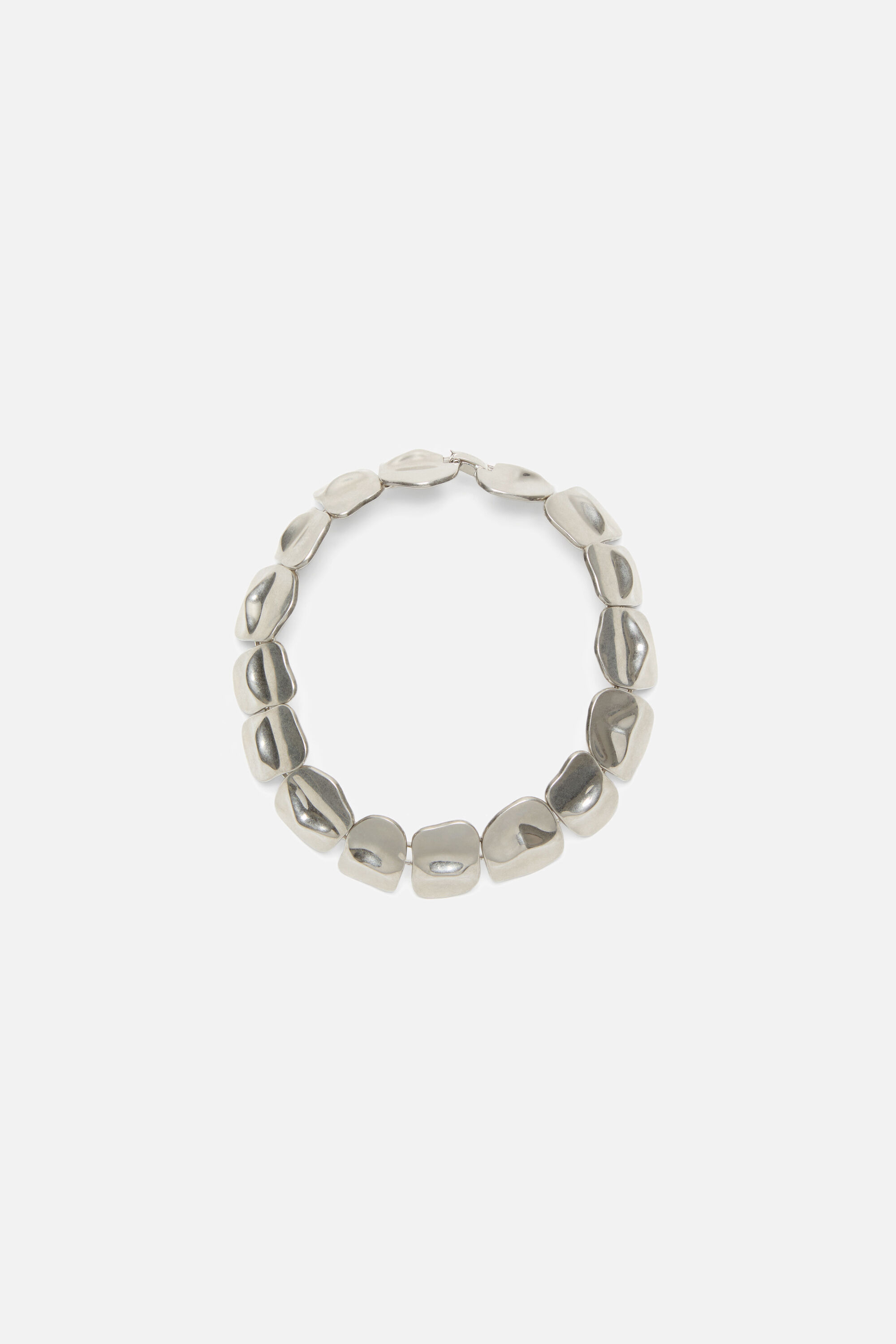 Necklace crafted in brass features a croco-shaped scale design, complete with a logo engraving and discrete closure. - Croco scale shape - Engraved logo - Discrete closure - Measurement: Total length 405 mm - Style ID: FN-UX-JEWE000530 - Shell: 100% Brass
