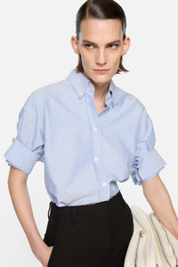 Button-up shirt crafted from 100% organic cotton, featuring short tailored cuff sleeves. Cut for a regular fit and below-hip length. - Regular fit - Below hip - Short tailored cuff sleeves - Button-up closure - Model is 178 cm / 5'8" and wears a size 36 - Style ID: FN-WN-BLOU001142 - Made from organically grown cotton - Shell: 100% Organic cotton