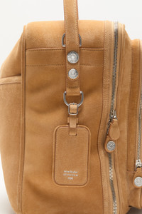 The Camero bag features a soft rectangular design with a compact, structured silhouette and multipocket layout, making it an ideal overnight bag. It is crafted from classic calf split suede and accented with multiple zip compartments, a branded key charm, and a signature denim-style button logo. The bag is finished with a drop handle and an adjustable crossbody strap for versatile wear. - Oversized travel bag - Drop handle and adjustable crossbody strap - Acne Studios logo embossed - Silver-toned zip compartments and denim-style button - Branded key charm - Measurements: 370 mm; 549 mm; 170 mm - Drop handle measurements: 850 mm - Crossbody strap measurements: Adjustable 420 mm to 650 mm - Style ID: Camero Hotel Suede - Shell: 100% Calf leather, Lining: 50% Polyester, 50% Polyurethane