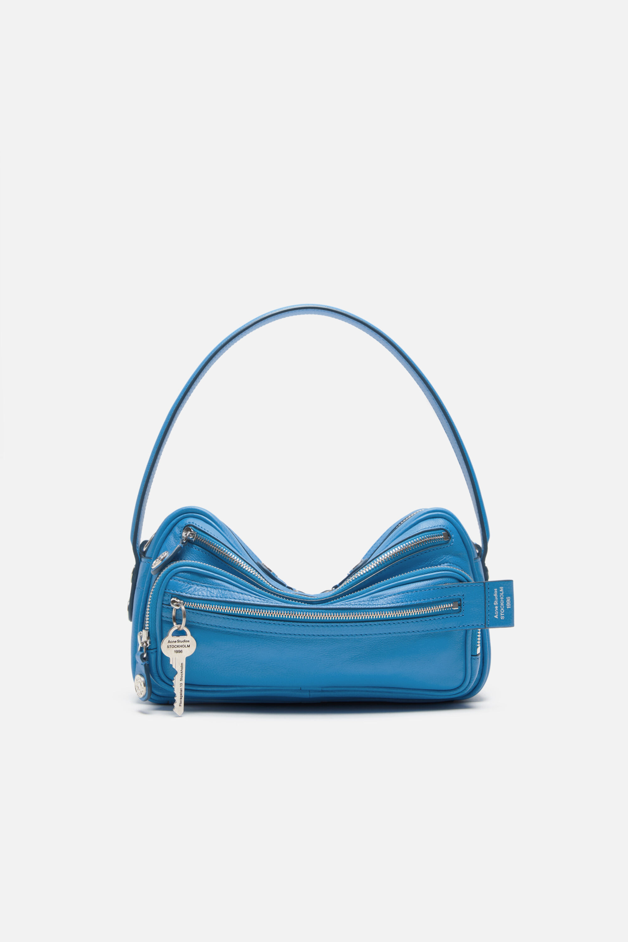 The Camero bag features a multipocket typology with a soft, rectangular design and a compact, structured silhouette. Accented with multiple zip compartments, branded key charm and signature denim-style button logo detail accents. Complete with a drop handle and adjustable crossbody strap for seamless wear. - Shoulder bag - Drop handle and adjustable crossbody strap - Silver-toned zip compartments and denim-style button - Branded key charm - Acne Studios logo embossed - Measurements: 16 cm; 26 cm; 7 cm - Drop handle measurements: 15 cm, max - Crossbody strap measurements: Adjustable 46 cm to 65 cm - Style ID: Camero Party - Shell made from leather from a Leather Working Group (LWG) certified tannery with Gold rating - Shell: 100% Calf leather, Lining: 50% Polyester, 50% Polyurethane