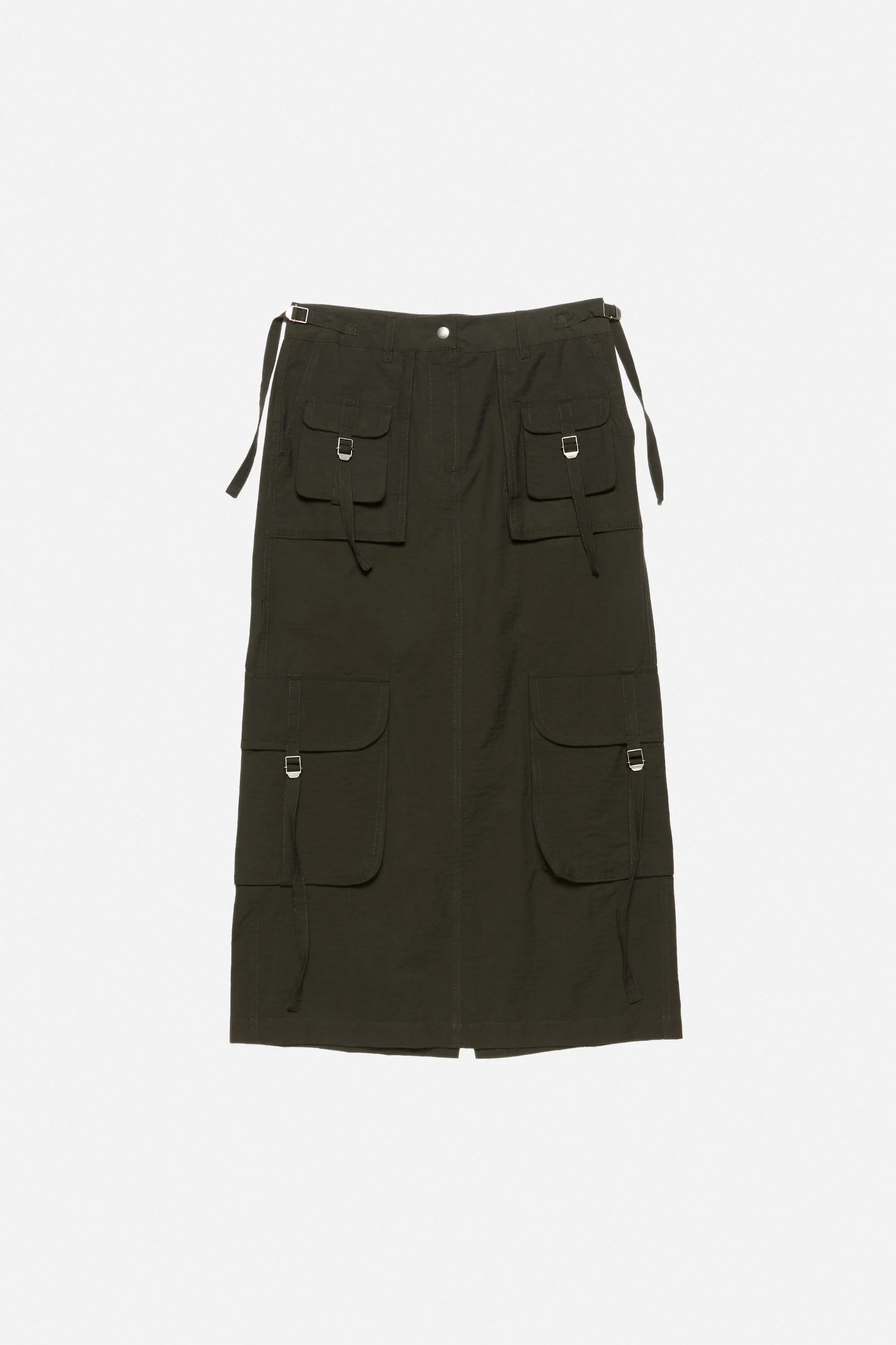 Skirt crafted in a cotton blend with a lightweight technical finish and soft crinkled appearance. Detailed with a cargo patch pockets. Cut to a relaxed fit, mid waist and ankle length. - Relaxed fit - Mid waist - Ankle length - Cargo pockets - Zip fly with snap button closure - Model is 179 cm / 5'11 and wears a size 36 - Style ID: FN-WN-SKIR000761 - Shell: 85% Organic cotton, 15% Nylon