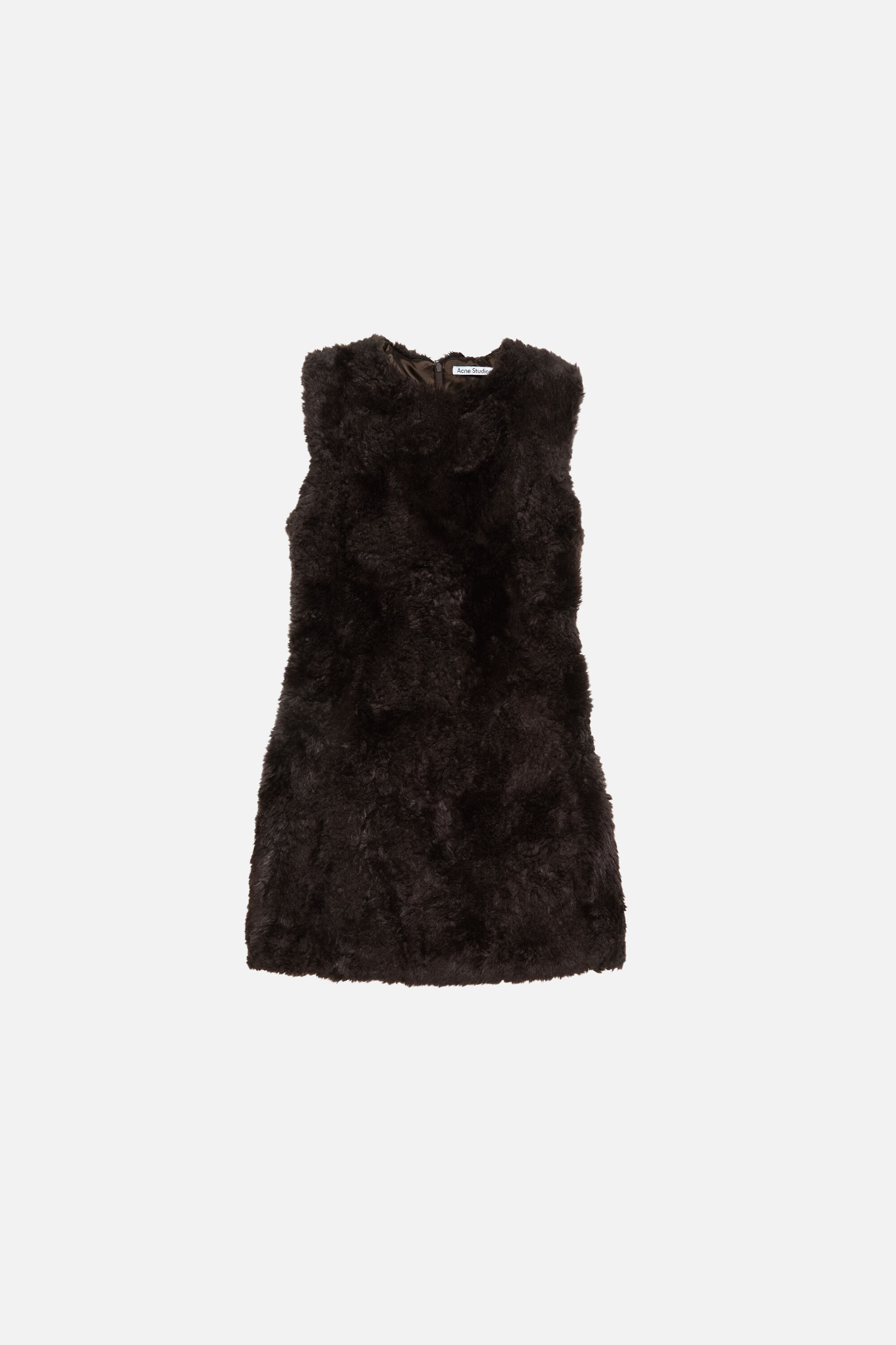 Sleeveless dress crafted from faux fur with a subtle shine and soft, fluffy handfeel. Designed with an invisible zip closure and cut to a fitted silhouette. - Fitted - Faux fur - Sleeveless - Invisible zip closure - Model is 180 cm / 5'9 and wears a size 36 - Style ID: FN-WN-DRES001537 - Faux Fur: 90% Acrylic, 10% Polyester, Lining: 100% Viscose