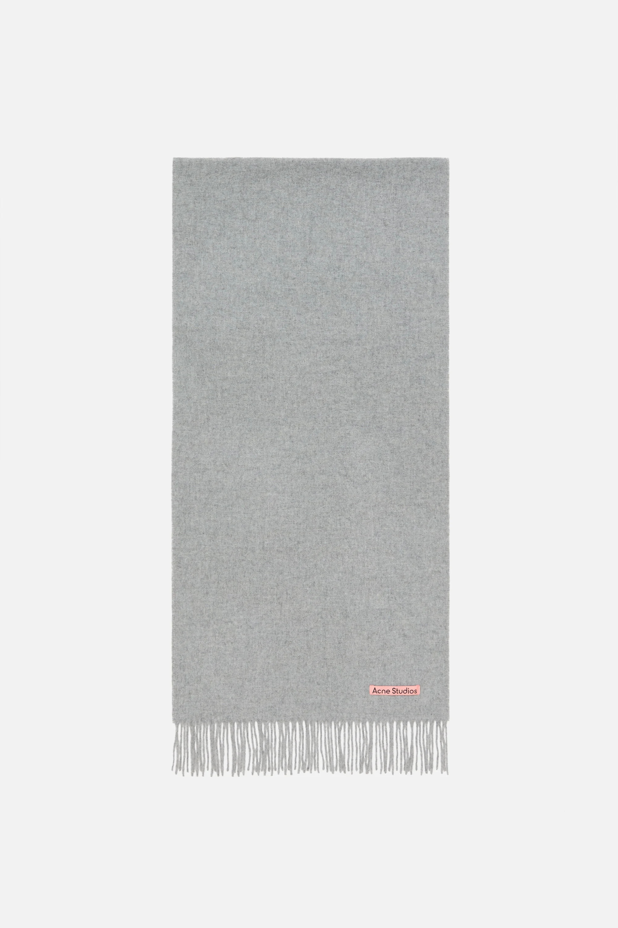 Fringed scarf is crafted from midweight wool with a soft hand-feel, detailed with a pink Acne Studios label. - Fringed ends - Midweight wool - Pink Acne Studios label - Measurements including fringe: 200 cm length; 45 cm width - Fringe measurements: 10 cm approx. - Made in Italy - Style ID: FN-UX-SCAR000218 - Made with certified wool according to the Responsible Wool Standard. Certified to the Responsible Wool Standard (RWS) by Control Union, license number CU-1024001 - Shell: 100% Wool